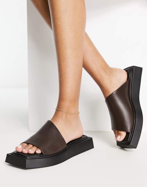Vagabond – Evy – Czekoladowe płaskie sandały ze skóry