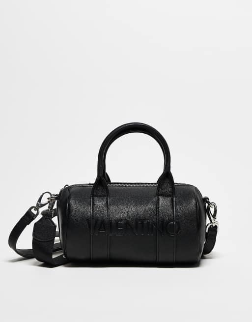 Valentino – Czarna, baryłkowata torebka crossbody z parcianym paskiem