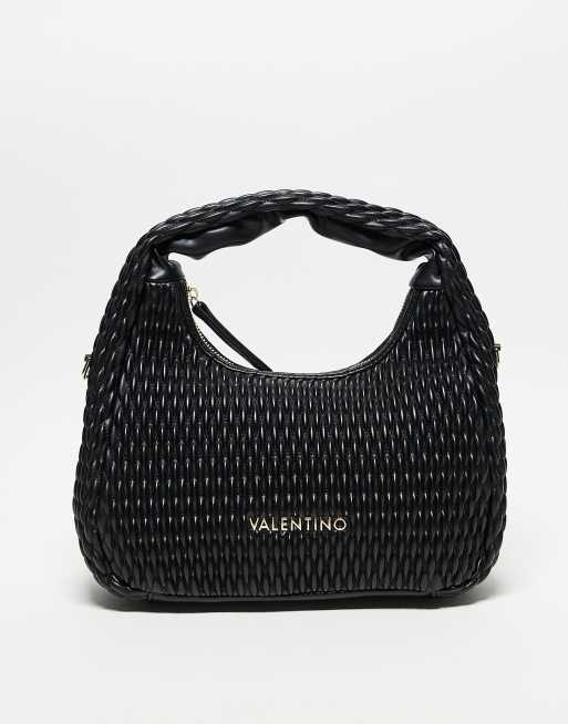 Valentino – Frequency – Czarna teksturowana torebka do ręki z paskiem crossbody