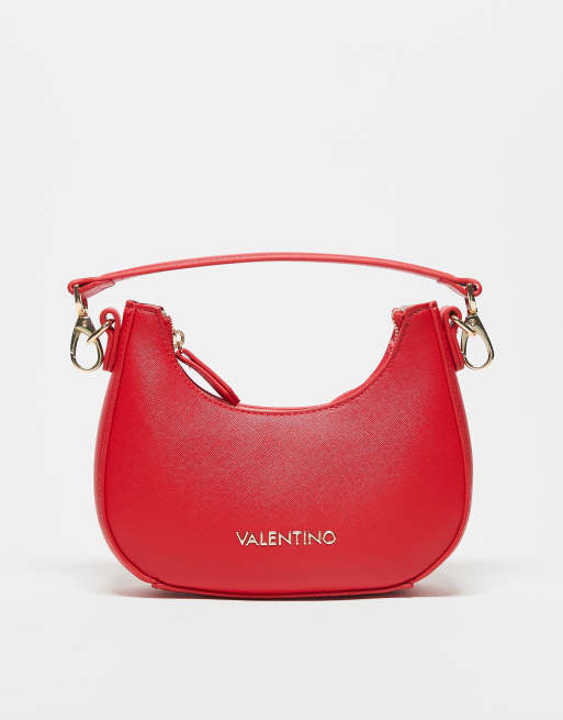 Valentino – Zero – Czerwona torebka na ramię z kontrastowym odpinanym paskiem parcianym