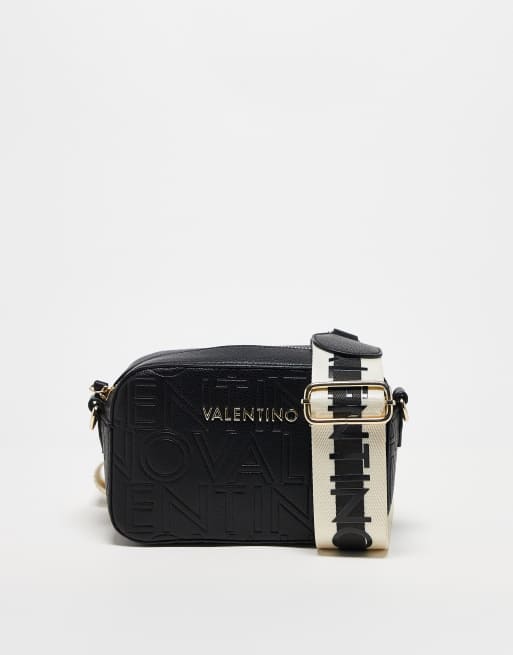 Valentino – Pansy – Czarna mała torebka crossbody w wytłaczany wzór z logo