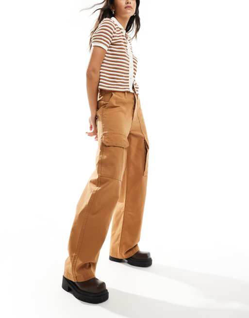 Vans – Arroyo – Brązowe spodnie bojówki z szerokimi nogawkami