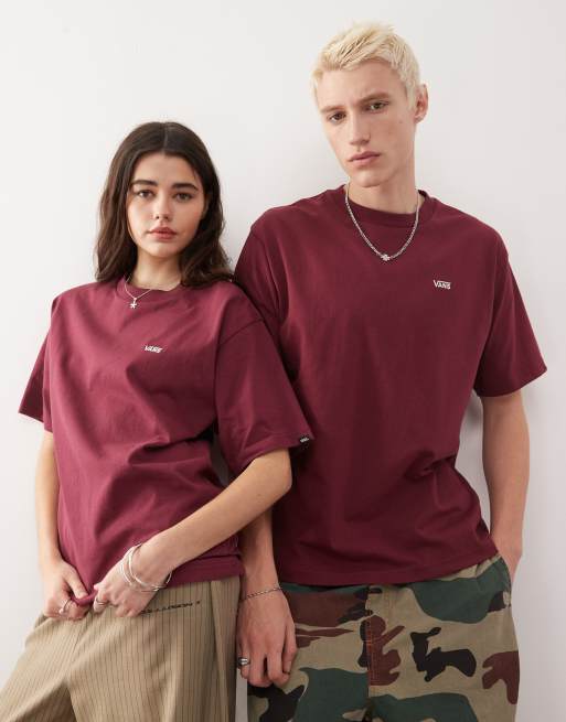 Vans – Bordowy T-shirt oversize z logo na lewej piersi, tylko w ASOS