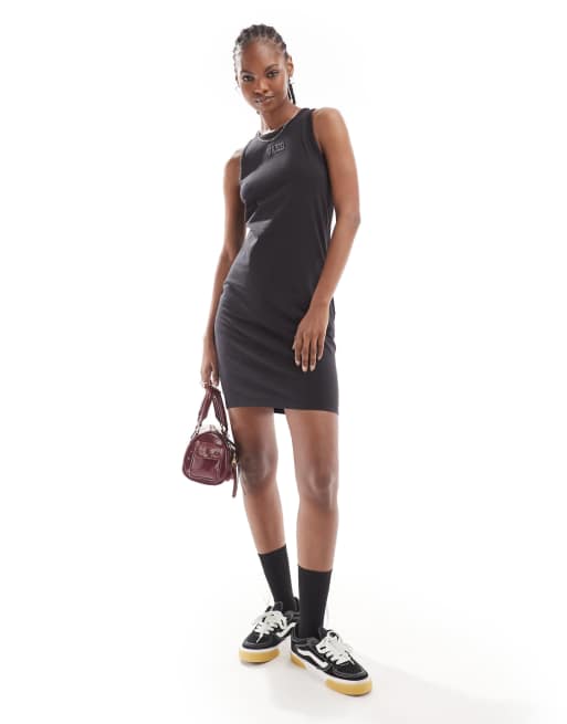 Vans – Czarna sukienka mini o fasonie podkoszulka w uczelnianym stylu z logo
