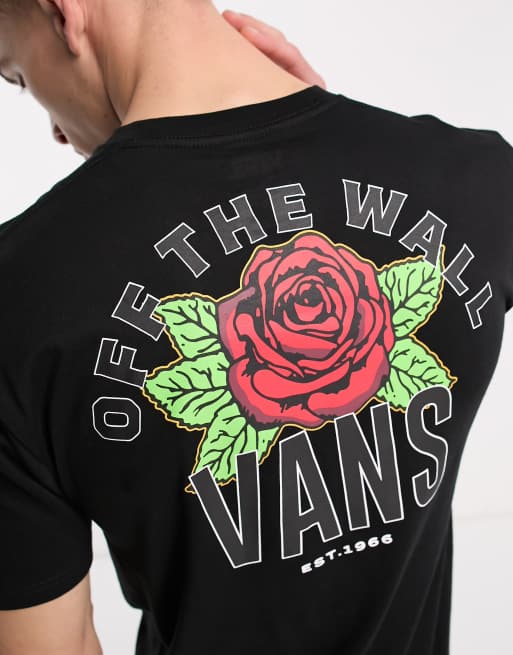 Vans – Czarny T-shirt z kwiatowym nadrukiem w uczelnianym stylu na plecach