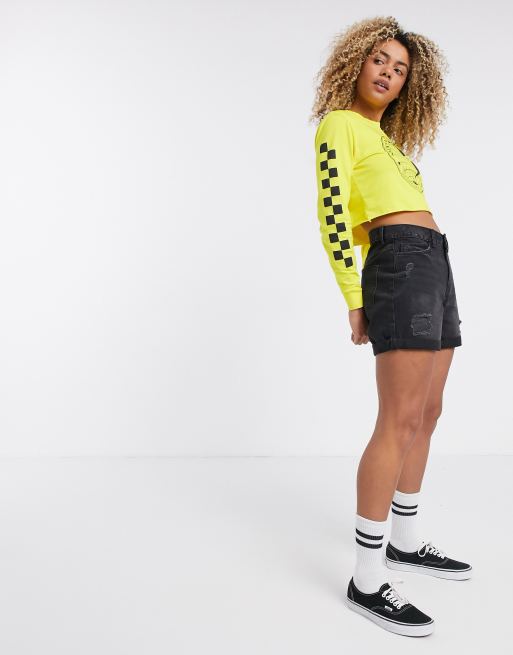 Vans i National Geographic – Żółty krótki T-shirt z długim rękawem i nadrukiem