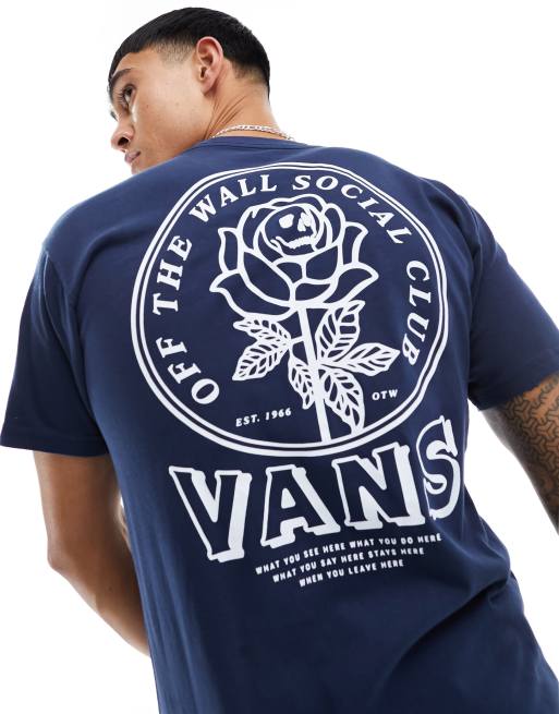 Vans Off The Wall – Granatowy T-shirt z nadrukiem na plecach z napisem „Social Club”