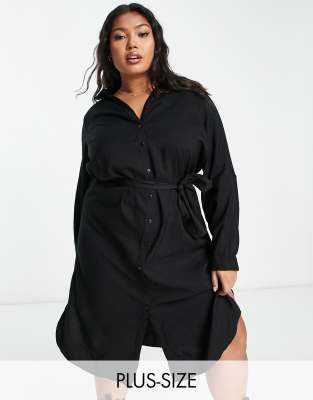 Vero Moda Curve – Czarna sukienka koszulowa midi
