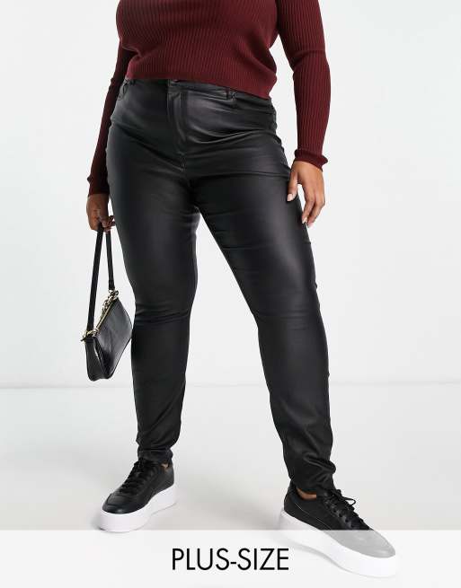 Vero Moda Curve – Czarne powlekane spodnie o obcisłym kroju