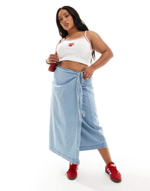 Vero Moda Curve – Jasnoniebieska kopertowa spódnica jeansowa maxi