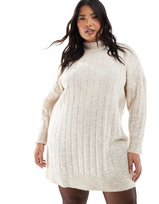 Vero Moda Curve – Kremowa melanżowa sukienka mini oversize z prążkowanej dzianiny