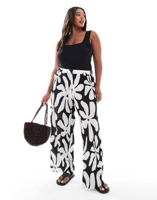 Vero Moda Curve – Plisowane spodnie z szerokimi nogawkami i podwyższonym stanem w tropikalny wzór