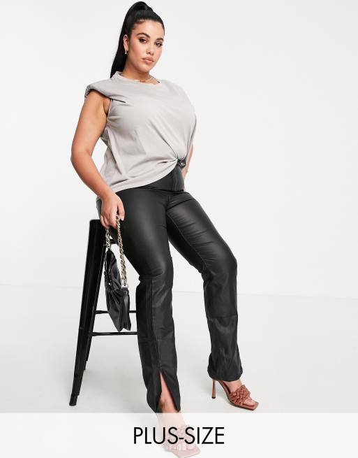 Vero Moda Curve – Szary T-shirt z poduszkami na ramionach