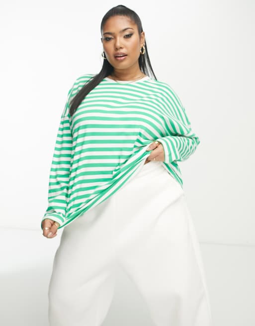 Vero Moda Curve – T-shirt oversize z długimi rękawami w zielone paski