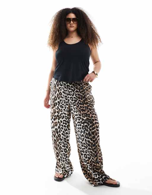 Vero Moda Curve – Wciągane spodnie z szerokimi nogawkami we wzór w cętki