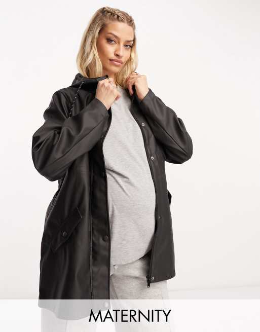 Vero Moda Maternity – Czarny gumowany płaszcz przeciwdeszczowy z kapturem