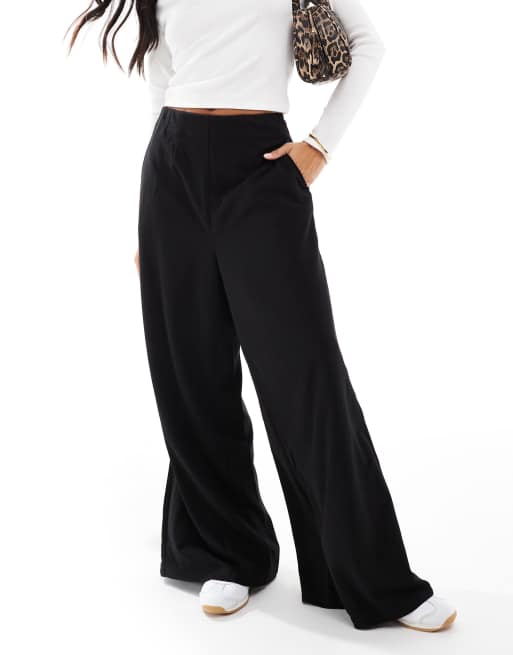 Vero Moda Petite – Czarne spodnie z bardzo szerokimi nogawkami z dżersejowej krepy