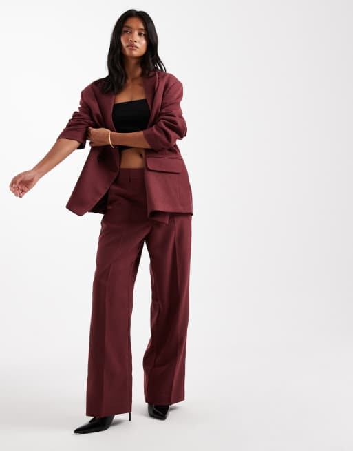 Vero Moda Petite – Dopasowane bordowe spodnie z szerokimi nogawkami w jodełkę, część zestawu