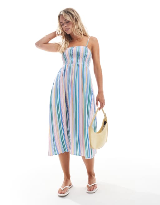 Vero Moda Petite – Easy – Kolorowa marszczona sukienka do kostek na ramiączkach