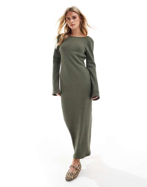 Vero Moda Petite – Fakturowana sukienka maxi z długimi rękawami w kolorze khaki