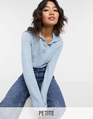 Vero Moda Petite – Jasnoniebieski sweter dzianinowy typu polo z kryształowymi guzikami