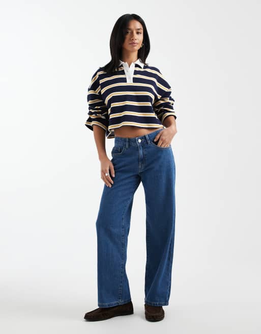 Vero Moda Petite – Kirsa – Niebieskie jeansy z prostymi nogawkami i średnim stanem
