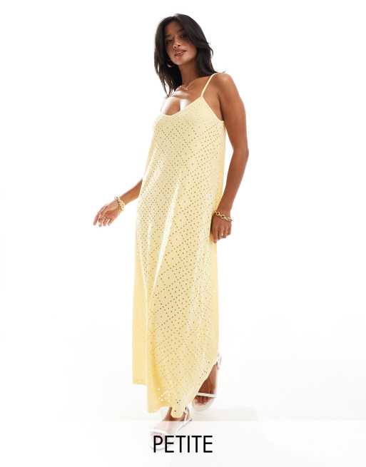 Vero Moda Petite – Żółta dżersejowa sukienka maxi z dekoltem w kształcie litery V