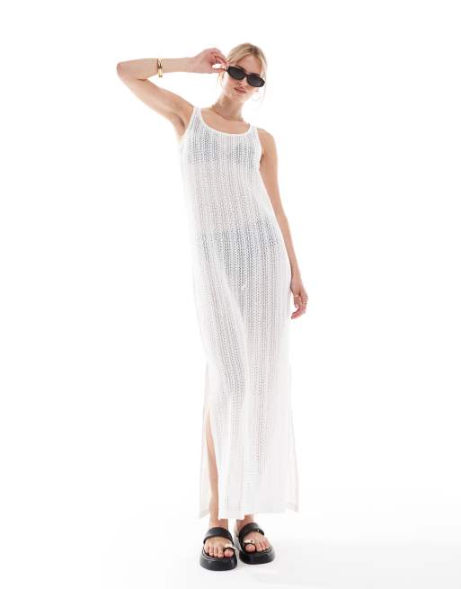 Vero Moda Tall – Biała dzianinowa sukienka midi