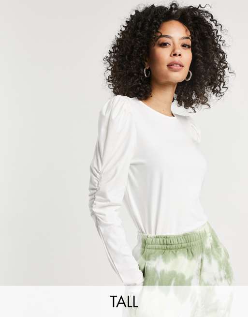 Vero Moda Tall – Biały top z bufkami i głębokimi mankietami