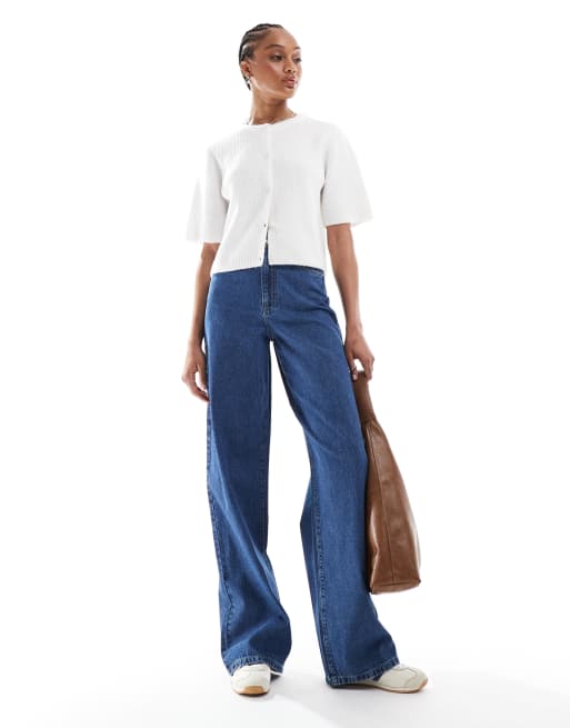 Vero Moda Tall – Kirsa – Niebieskie jeansy z szerokimi nogawkami i podwyższonym stanem