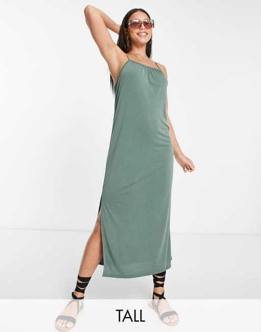 Vero Moda Tall – Lekka wiązana na plecach sukienka midi na ramiączkach w kolorze khaki