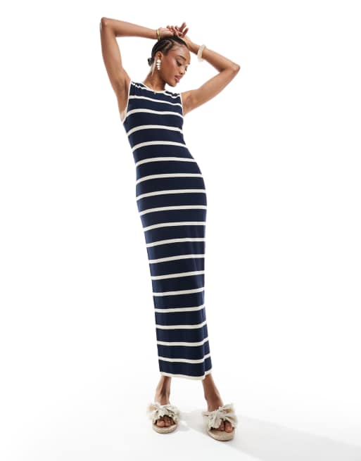 Vero Moda Tall – Sukienka do kostek z dzianinowego dżerseju w granatowe paski