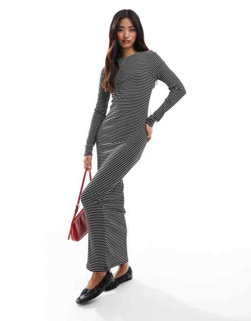 Vero Moda – Aware – Czarna sukienka midi z długimi rękawami z dżerseju w paski