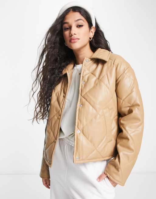 Vero Moda – Beżowa kurtka pikowana z imitacji skóry