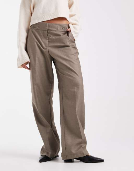 Vero Moda – Beżowe melanżowe eleganckie spodnie z szerokimi nogawkami, zakładkami z przodu i regulacją w talii
