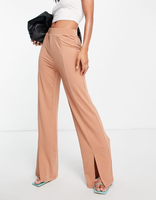 Vero Moda – Beżowe spodnie z rozcięciem na mankiecie
