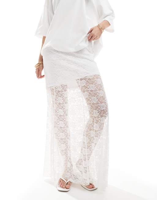 Vero Moda – Biała koronkowa spódnica midi z podszewką