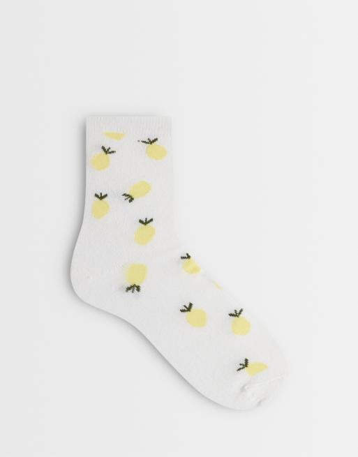 Vero Moda – Białe skarpetki do kostki w cytryny