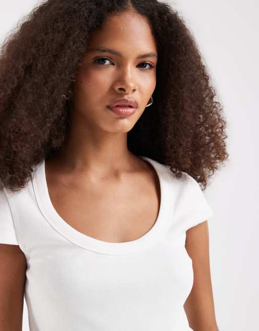 Vero Moda – Biały prążkowany T-shirt z dekoltem U