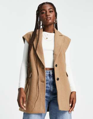 Vero Moda – Camelowa kamizelka w formalnym stylu