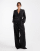 Vero Moda – Ciemnoszary melanżowy zestaw: dopasowane spodnie z szerokimi nogawkami i marynarka z wiązaniem z boku