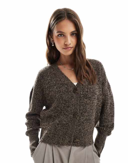 Vero Moda – Czekoladowy melanżowy kardigan w szerokie prążki zapinany na guziki