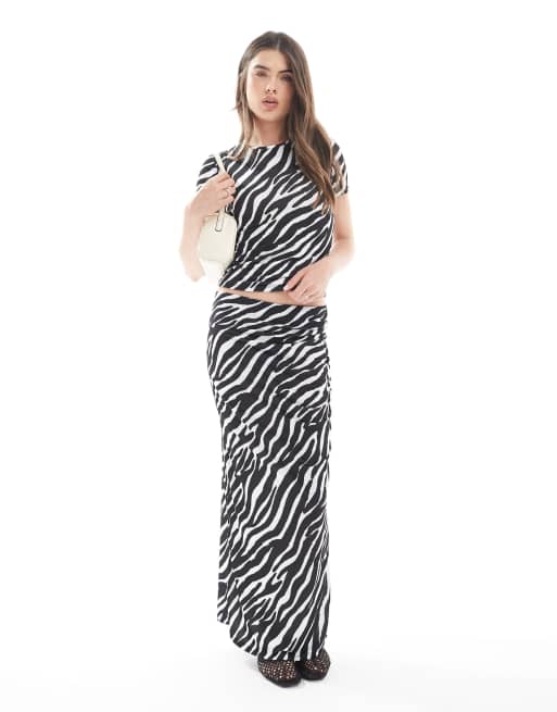 Vero Moda – Dżersejowa spódnica maxi z rozcięciem z boku w paski zebry, część zestawu