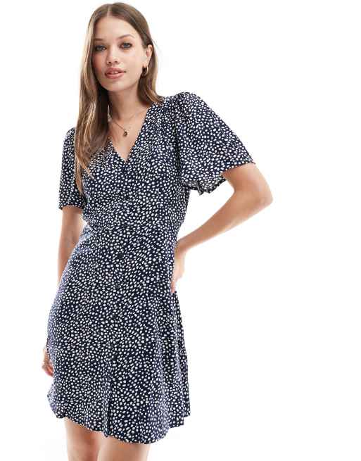 Vero Moda – Granatowa zapinana na guziki sukienka mini typu skater w kropki