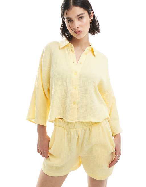 Vero Moda – Jasnożółta teksturowana koszula o krótkim fasonie, część zestawu