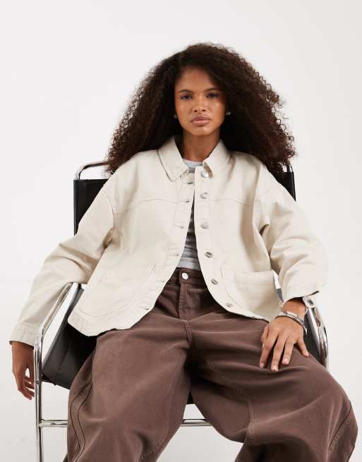 Vero Moda – Kremowa, jeansowa kurtka koszulowa z kieszeniami z przodu