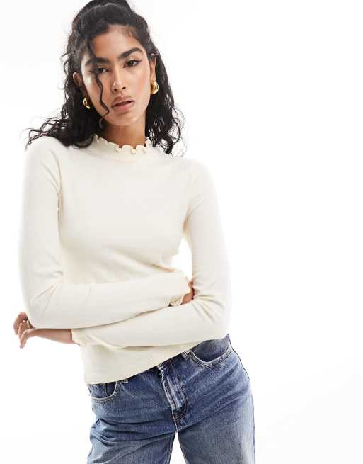 Vero Moda – Kremowy dzianinowy top z karbowanym wykończeniem