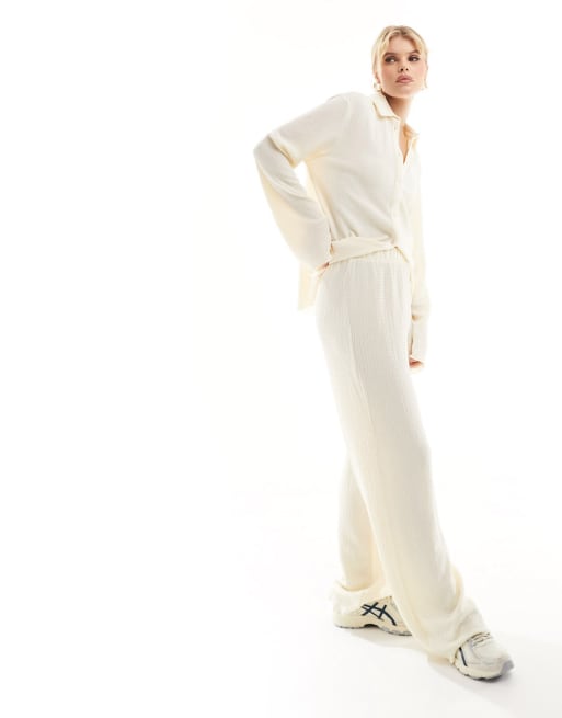 Vero Moda – Kremowy fakturowany zestaw z dżerseju: koszula i spodnie