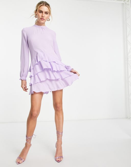 Vero Moda – Liliowa szyfonowa sukienka mini z falbanką