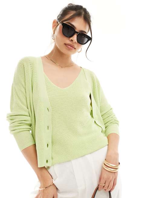 Vero Moda – Limonkowy lekki kardigan, część zestawu